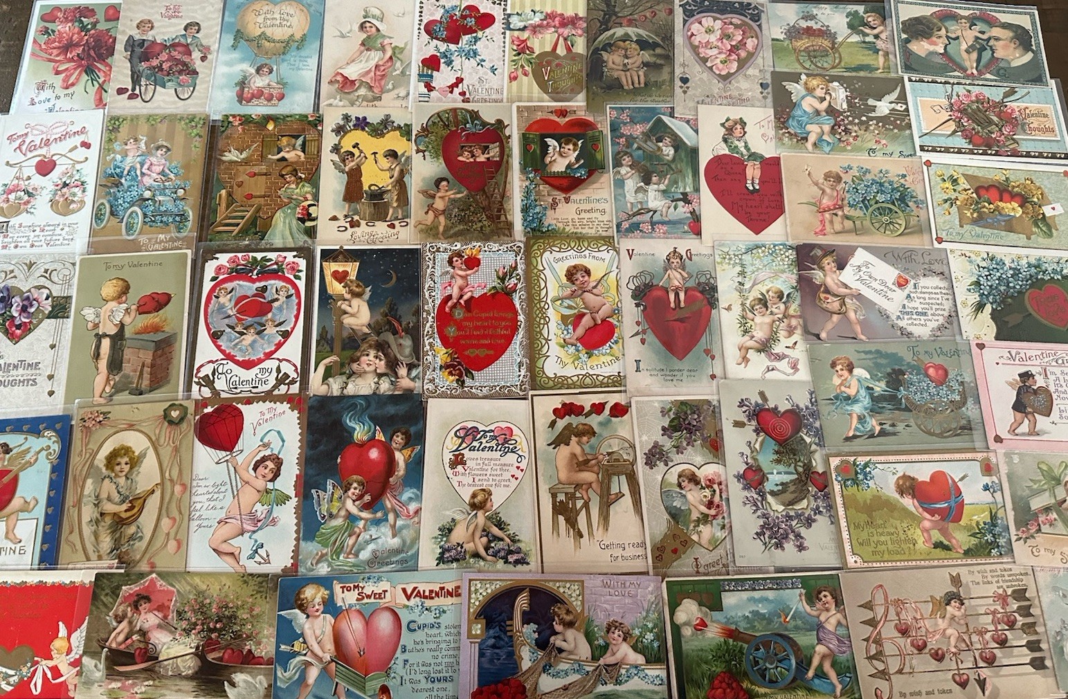 Lot of 52 Antique Valentine’s Day Postcards with Cupids, Children, Hearts